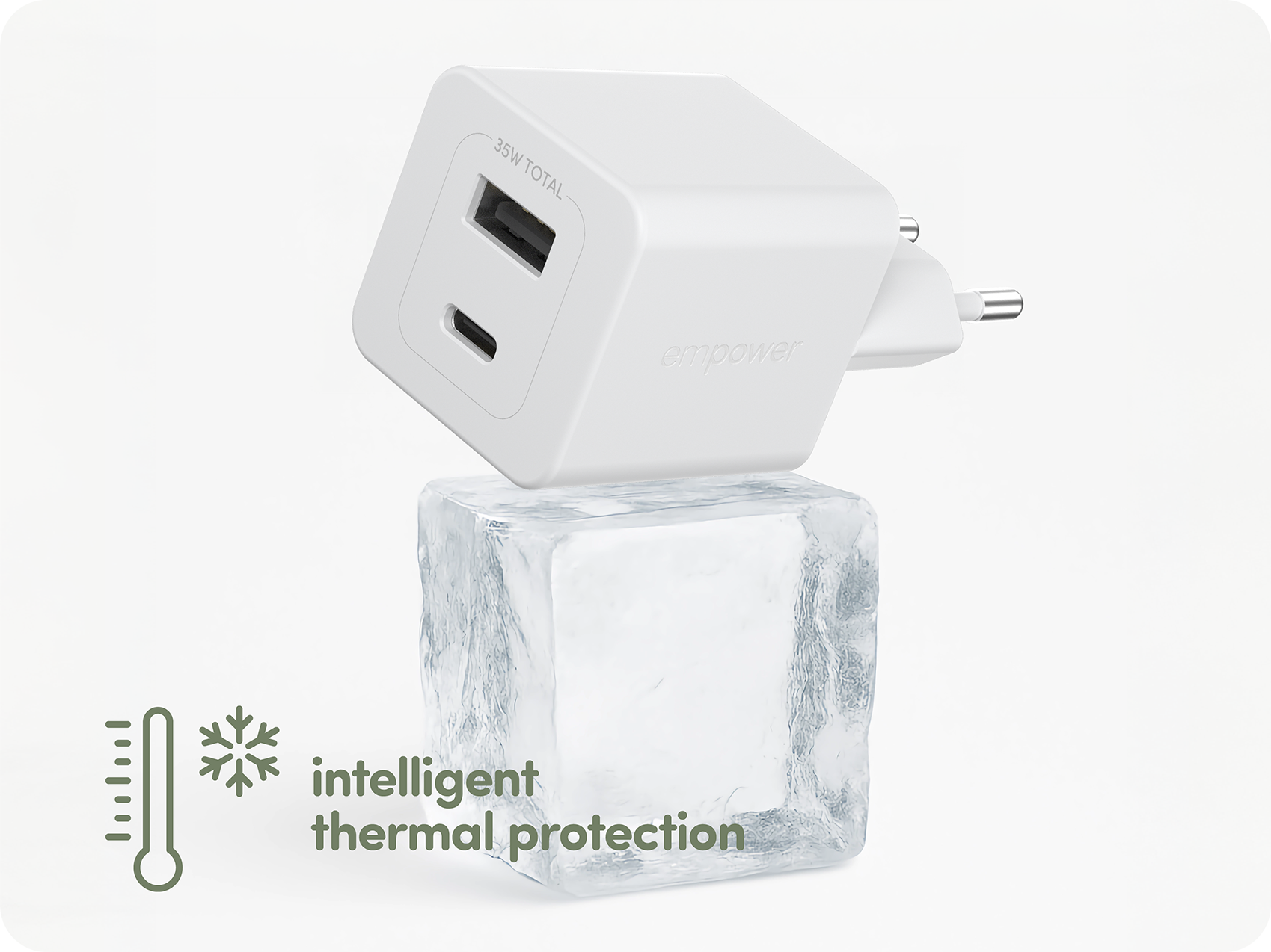 empower by PanzerGlass® Turbo 35W Oplader inkl. USB-C + USB-A | EU Stik | Silver White